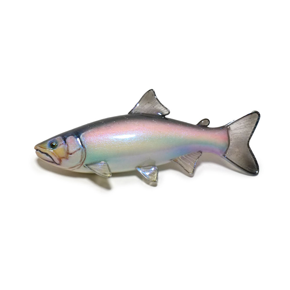 ヒレ部はステンレスワイヤーで形を作り透明コーティングをしています。