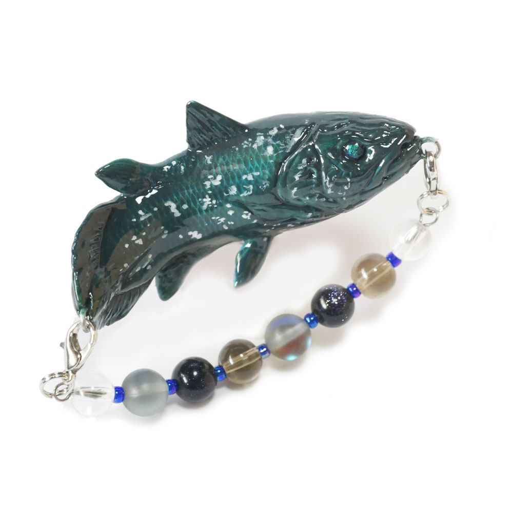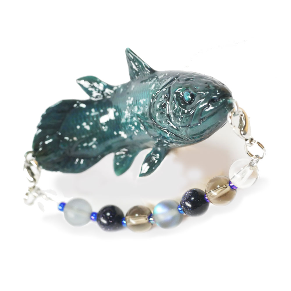 ブレスレット部分はアクリル、天然石を組み合わせています。